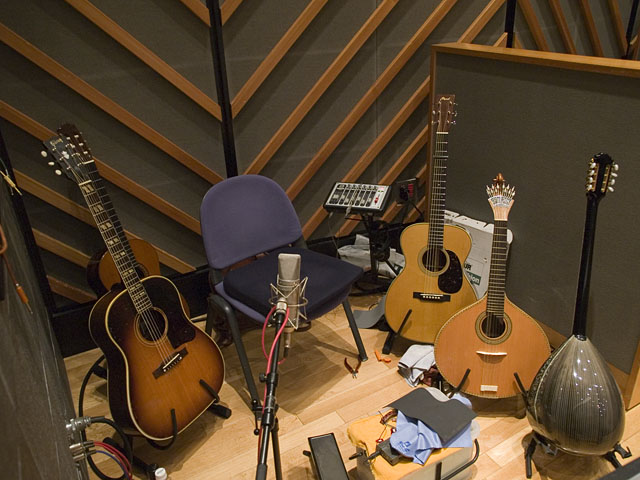 フィンガーピックをつけたGIBSON SJのサウンドは、いつもならハッキリした通りの良い音になるのだが、リボンマイクのおかげで低域が幾分ふっくらとして、暖かみのある音に深みが増したようだ。