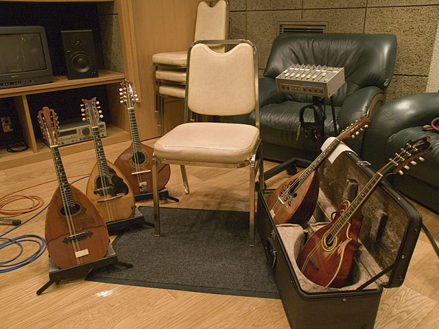 ほどなく和田氏の登場で本日録る映画の説明や、なぜ数種類のマンドリンが必要かという趣旨を聞く。映画の舞台が昭和初期なので、それに見合った音色を選びたいということだった。あらかじめ録音済みのオケに一本ずつ順番に当てていく。シンプルなメロディーなので、音色命といったところか。