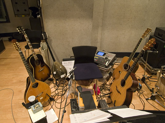 4月2日夜サウンドインAstにて、この4月からTBS系で放送予定のドラマ「冗談じゃない!」の劇伴録音。音楽は佐藤直紀氏。様々なオケが入った後最後のダビングなので、遅い時間帯になってしまったようだ。既に録音されたトラックにダビングする曲は1曲のみで、あとは全てアコギバージョン。つまり一人何役もやることになる。今回もGIBSON SJ , MERRILL OM28 , GUT(CASA PARRAMON)といういつもの精鋭部隊だ。