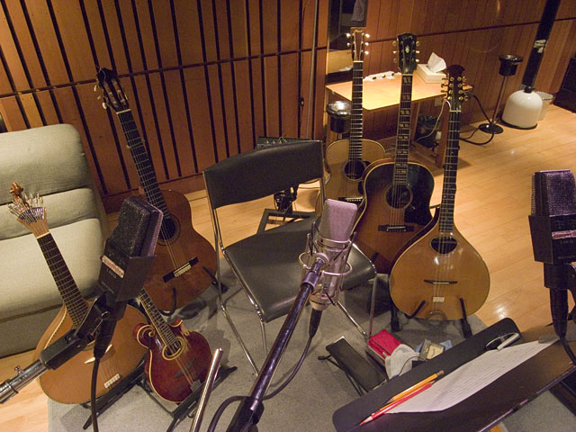 5月7日夕方から青山VICTOR301stでレコーディング1曲。編曲は若草恵氏。本日はアコギとマンドリン。念のためにマンドリンはフラット、ラウンド両方用意する。早めにスタジオに着くと、まだ1曲目の録音最中。開始時間になっても1曲目が終わらず、1時間ほど押してようやくtassiの参加曲となる。