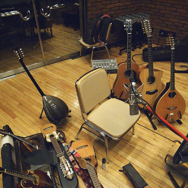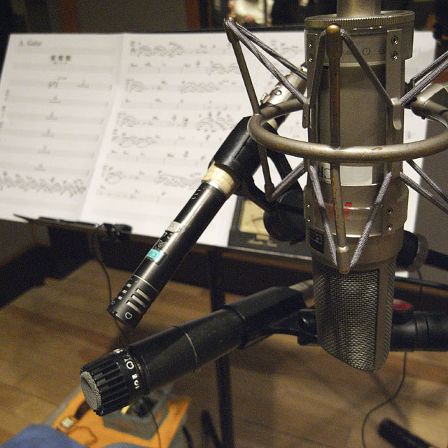 夜は前日の続きで代々木のWONDER STATIONまで。本日はカンテレのダビングのみ。直前に1484でマイク「DPA 4060」を手に入れたので、エンジニアの田中氏に無理言って立てさせてもらった。無指向なのでサウンドホールを少し外して、ほぼ中心にセッティング。両サイドにNEUMANN U87をステレオで2本という具合だ。