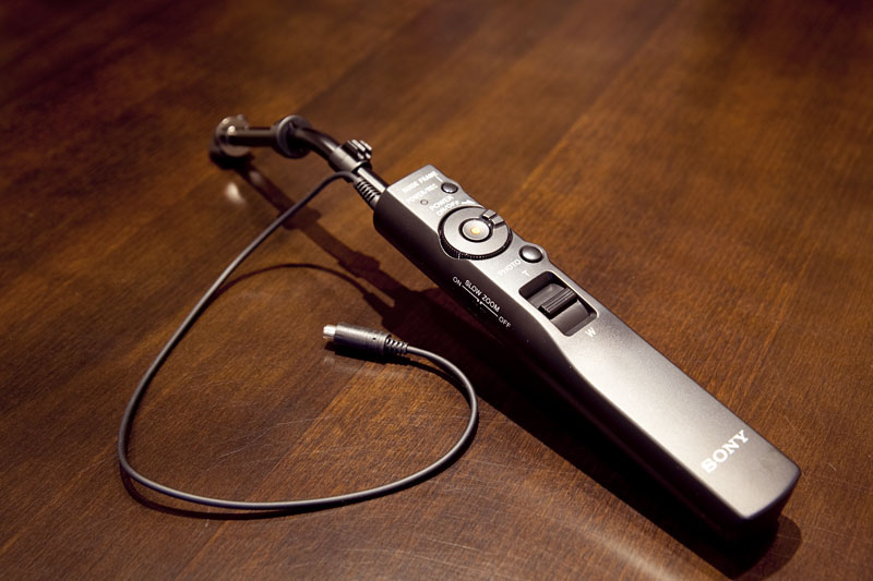 そこで三脚についているパン棒を外すことを思いついた。ねじを緩めることで簡単に外れ、ごらんの通りだ。先の金属部分がちょっと邪魔だが、機能としては最高だ。アクセサリーとして別売されている、小型のリモートコマンダー「RM-AV2」を使えばよさそうだが、たぶん「SLOW切り替え」はないだろう。