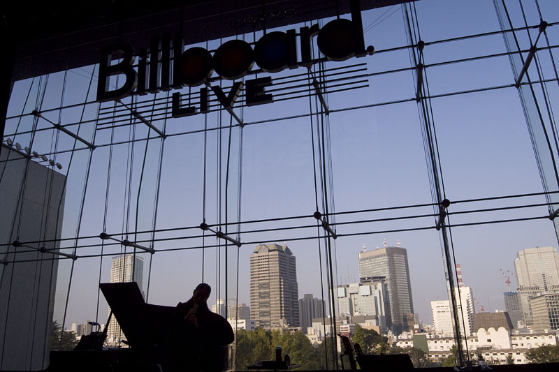 六本木ビルボードは、ステージの後ろがガラス張りとなっており、夜ともなると夜景が素晴らしい。いつもはカーテンが閉められており夜景が見えないのだが、その理由の一つとして音響に与える影響が大きいということらしい。