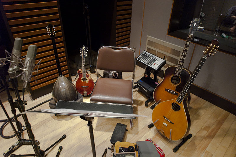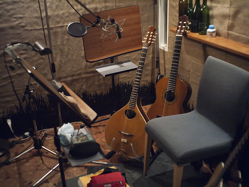 時間前だったが急き立てられるように、おっと違った、軽く肩をたたかれるように録音作業に入る。まずはtassi一人でのダビング作業。ブズーキやバンジョーそしてガットでのギターバージョンを録る。