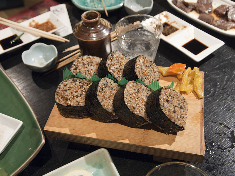 ここは全てがおいしいのだがtassiはカワハギの刺身がお勧めだ。都内で食べると薄っぺらい透けた切り身がチョットだけということが多いが、ここは生き造りのようにドーンと立派に出てくる。ほかにも牛のハラミ、豚バラ、サンマの寿司さらには爆弾巻きなど、明日本番があるんだろうかというほど我を忘れて楽しんんでしまった。