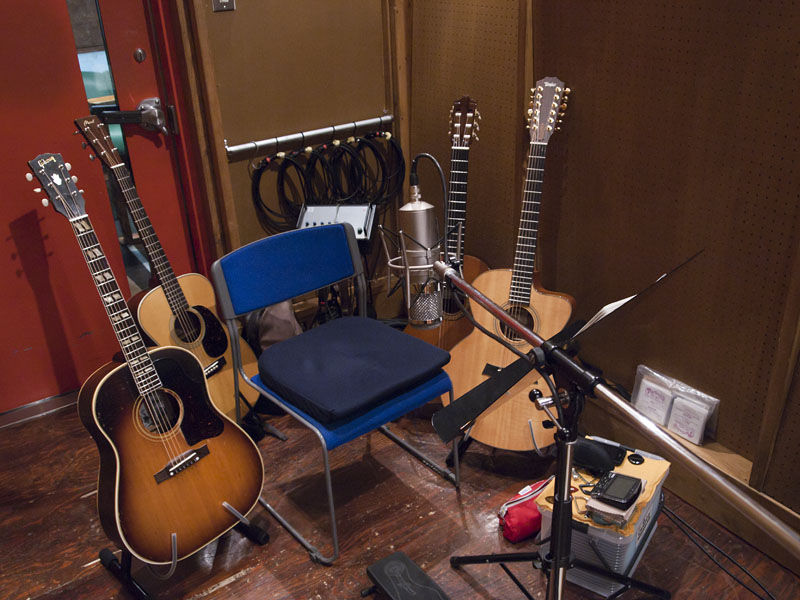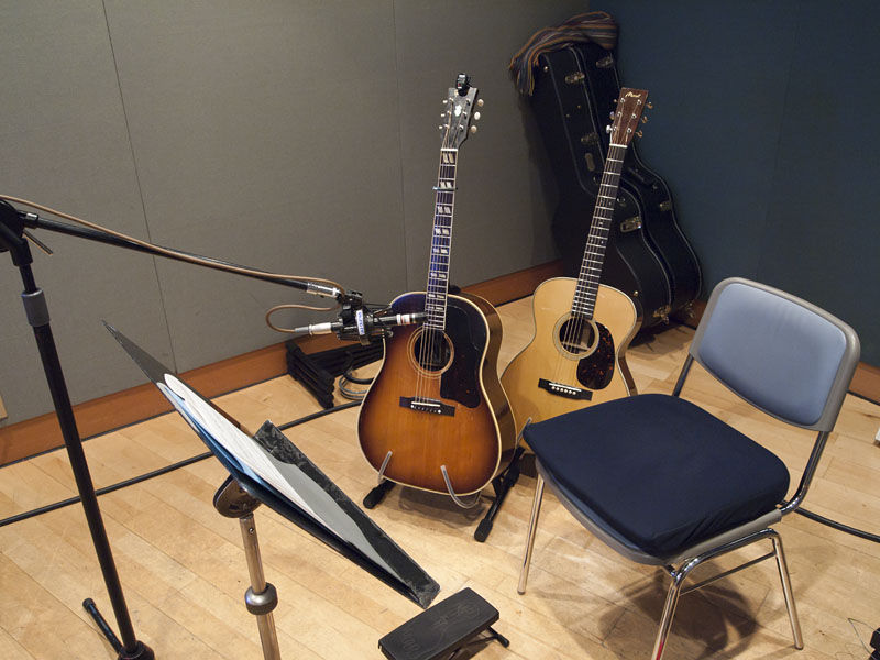 アコギはアルペジオとストロークをダビングする。もちろんギターはそれぞれキャラクターを生かし、GIBSON SJとMARTIN D-28 HWで弾き分ける。フィンガーピックをつけていたので、ドレッドノートのサウンドもシャッキリした。フレーズはガットで丁寧且つニュアンスをつけて弾く。