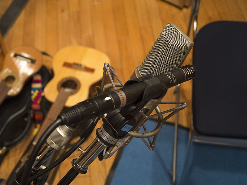 当初チャランゴをお願いと言われていたが、送られてきたデモを聞くとこれはカバキーニョの方がマッチングしていると考え、両方ともに持って行く。現場でいろいろとオケに当ててみると、やはりtassiの読みは的中し晴れてカバキーニョの採用となる。