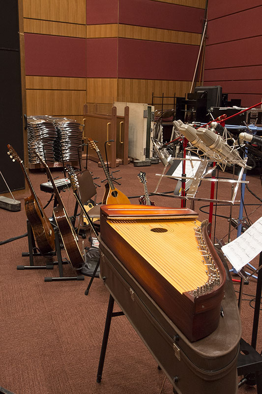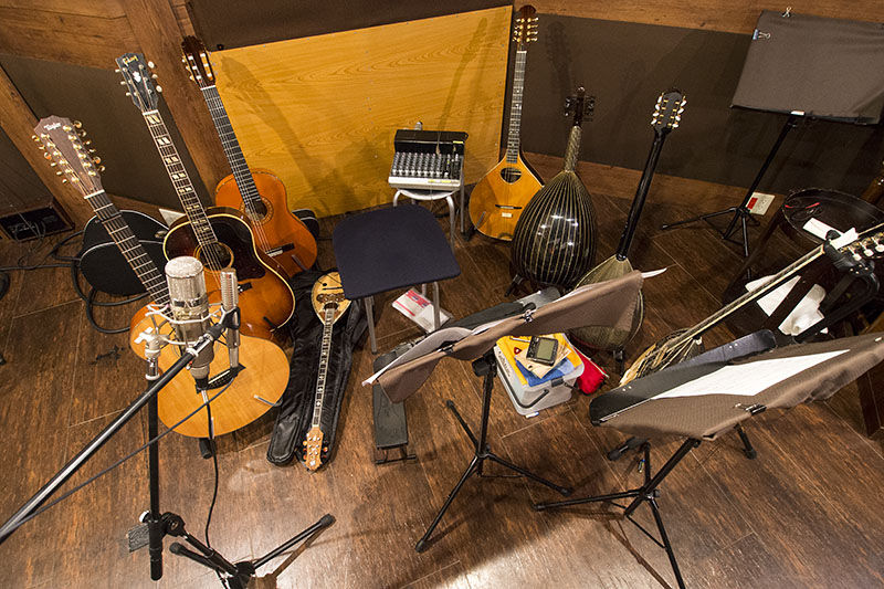 後は竿モノのダビングを残すだけとなる。ガット2台でのギターバージョンや、ちょっと変わった音色が欲しいということでジュラ(TZOURAS)を提案してみたりと、いつもの劇伴録音が無事に終わる。