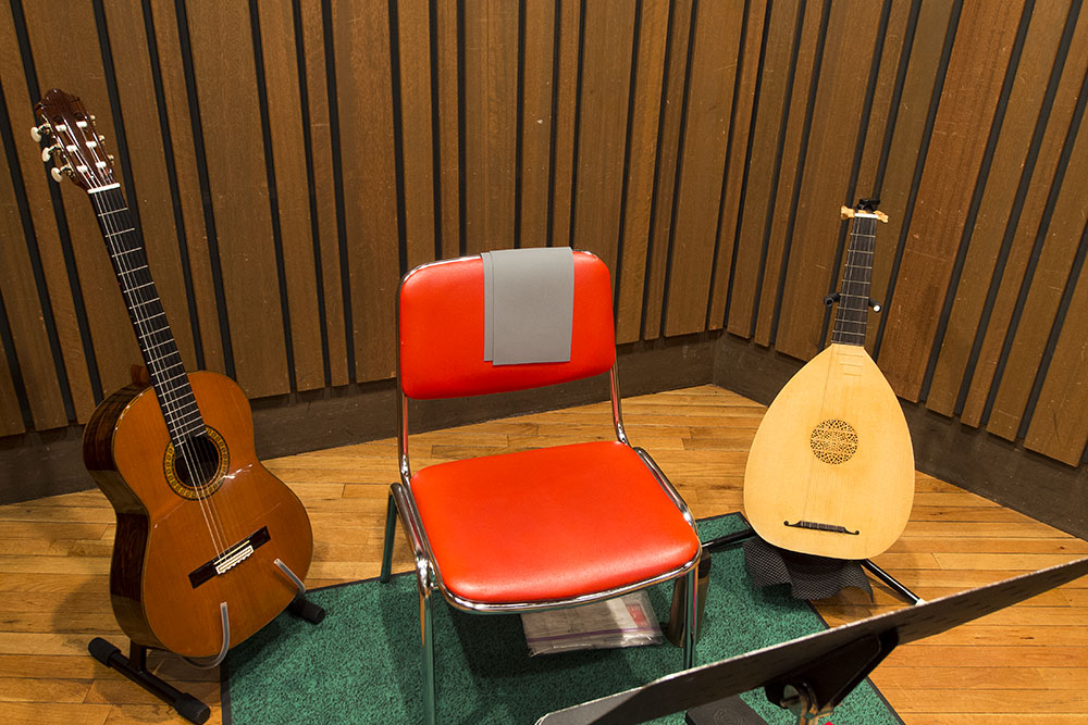 3度抜きサウンドが多いのでギリシャ・ブズーキも2種類用意した。オリジナルの4度チューニングの楽器に加え、マンドリンの1オクターブ下の5度チューニングにセットされたものだ。両者をうまく使い分け志方サウンドに対応していく。同じブズーキでもチューニングが異なると、出てくるサウンドが違うのが興味深いところである。