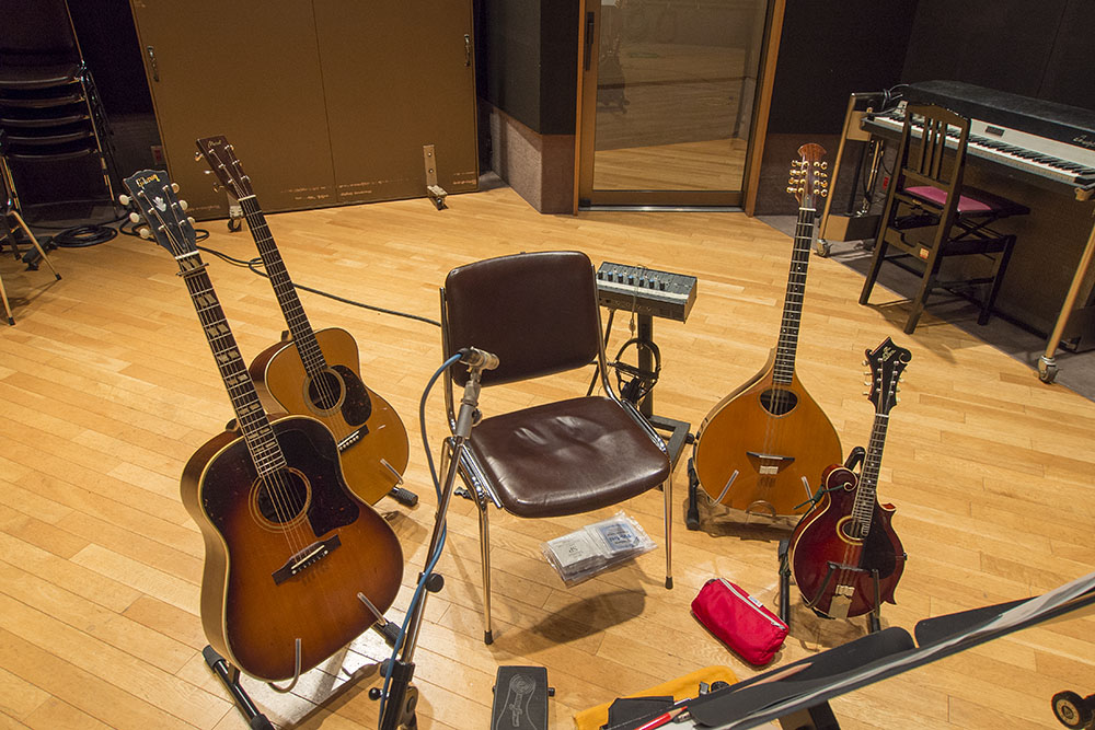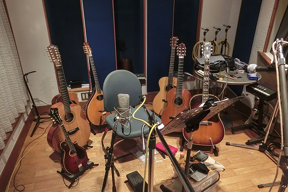 ギタリストのダビングを待ってtassiの番が回ってくる。本日は♯系のキーの曲に、マンドリンとカバキーニョでリズムをダビングするという内容。フラット、ラウンドどちらのマンドリンがマッチするかと訊かれたので、もちろんフラットでしょうと答える。